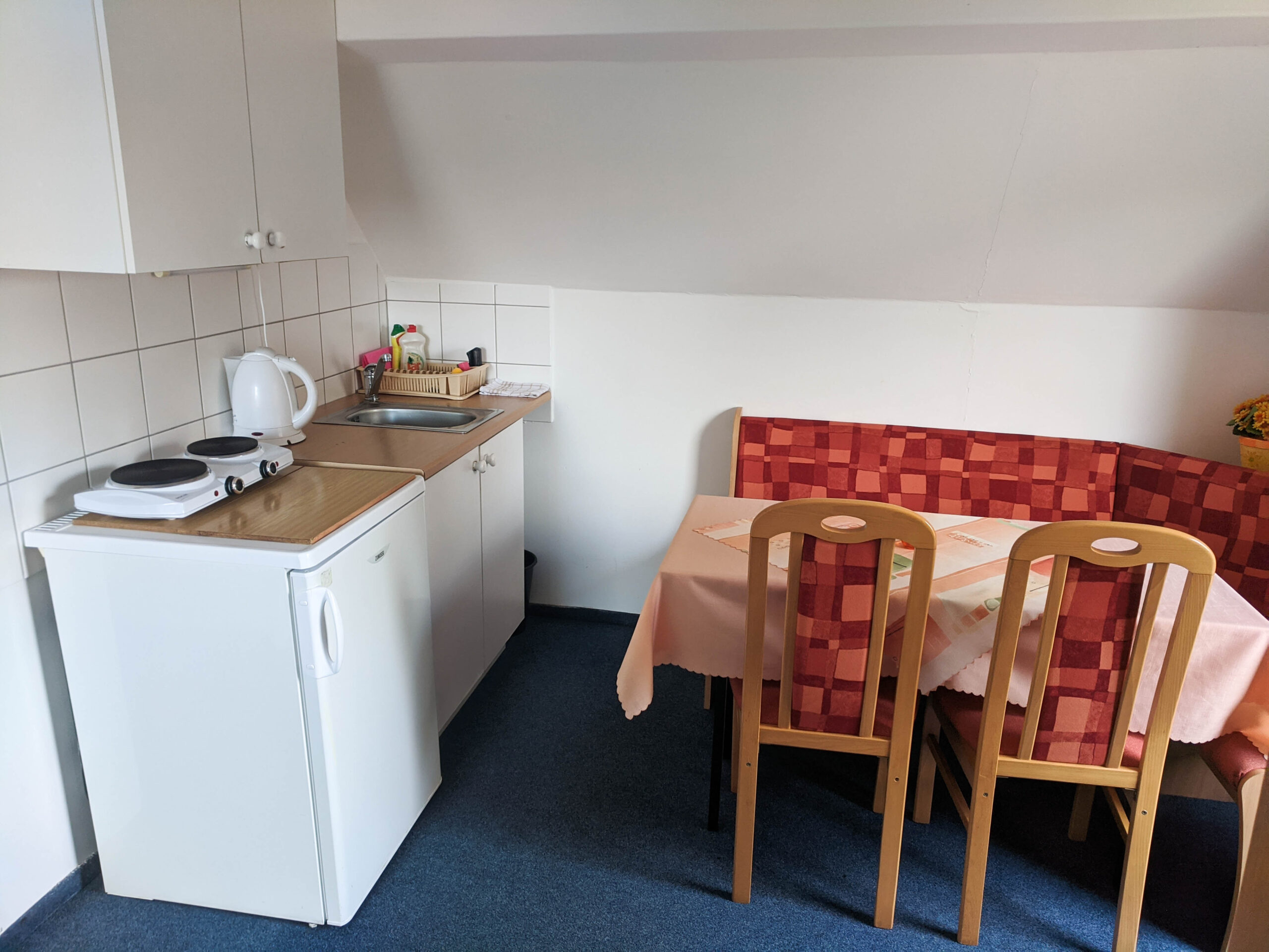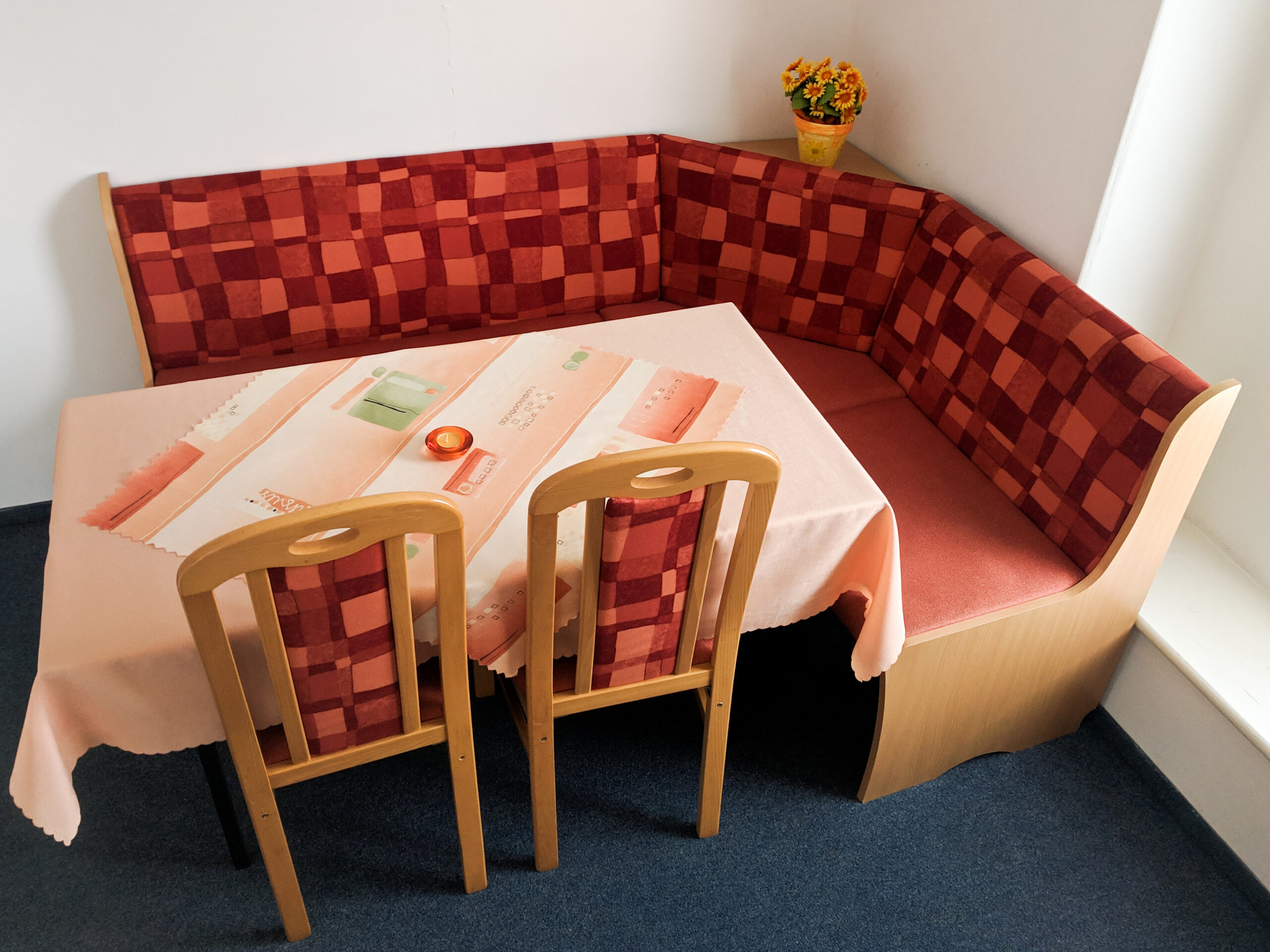 Samozřejmostí pak je plně vybavená kuchyňka, samostatné sociální zařízení a lavice se stolem na rodinné porady a hraní her.